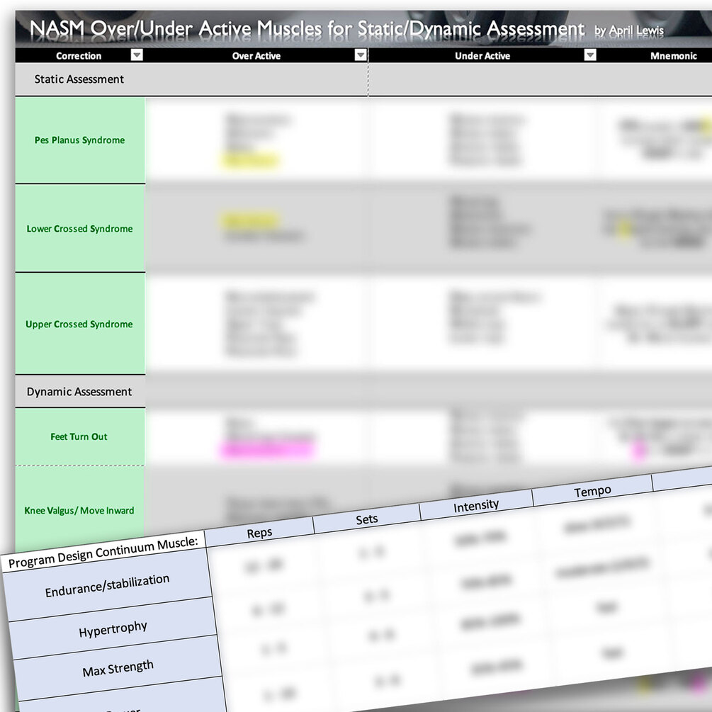 *The Static and Dynamic Assess Chart will help you memorize mnemonics to help you remember under and over active muscles for the NASM CPT7.